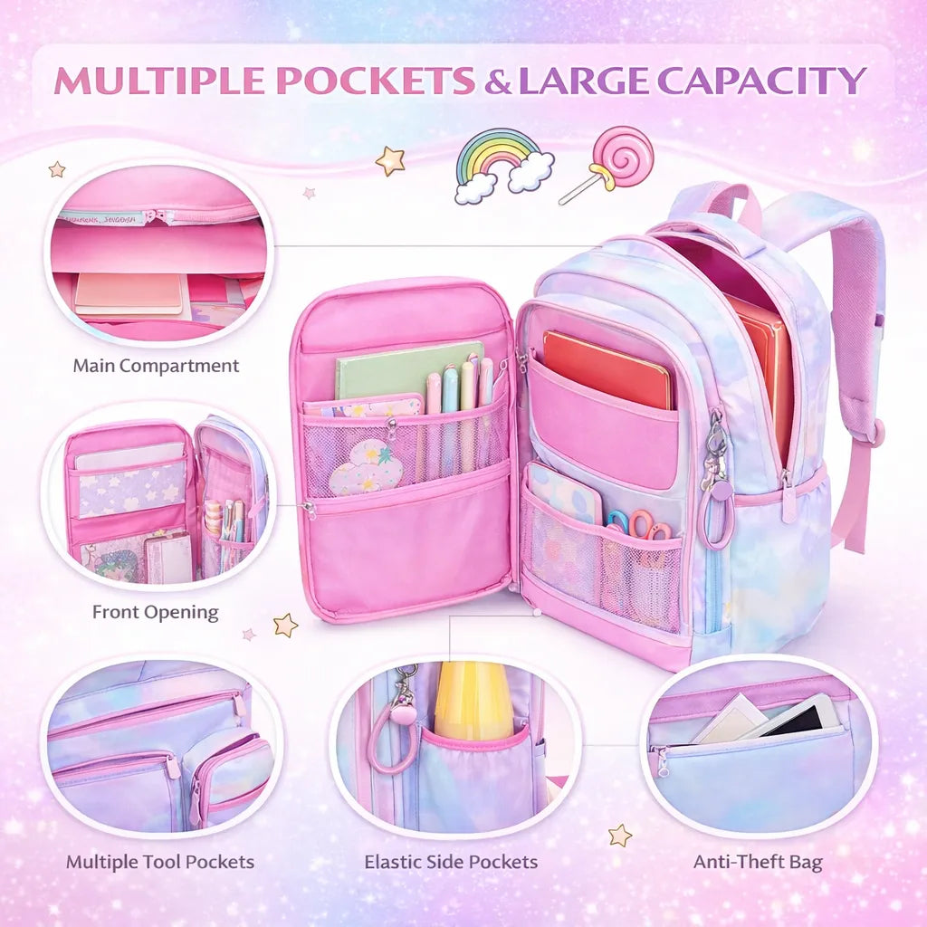 Add a cute pastel touch to your everyday style with this Multi-Pocket School Backpack. It is spacious, lightweight, and designed with multiple compartments to keep your items organized. Perfect for school, college, travel, and daily use.
